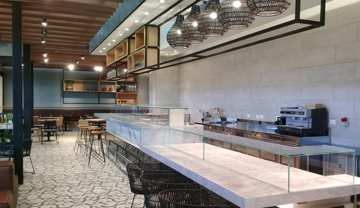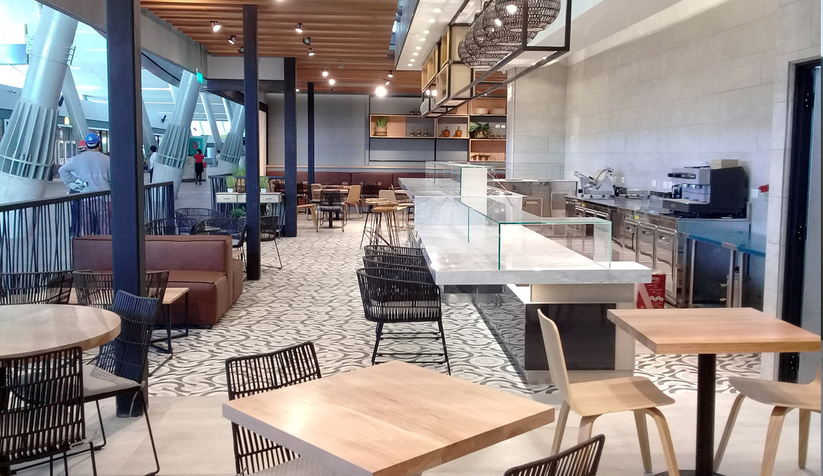 Construcción y Habilitación Local Restaurant Mozzarella Bar by Pomeriggio, 3er nivel Espigón C Internacional , Aeropuerto Santiago AMB, Pudahuel, Santiago, 225 m2,